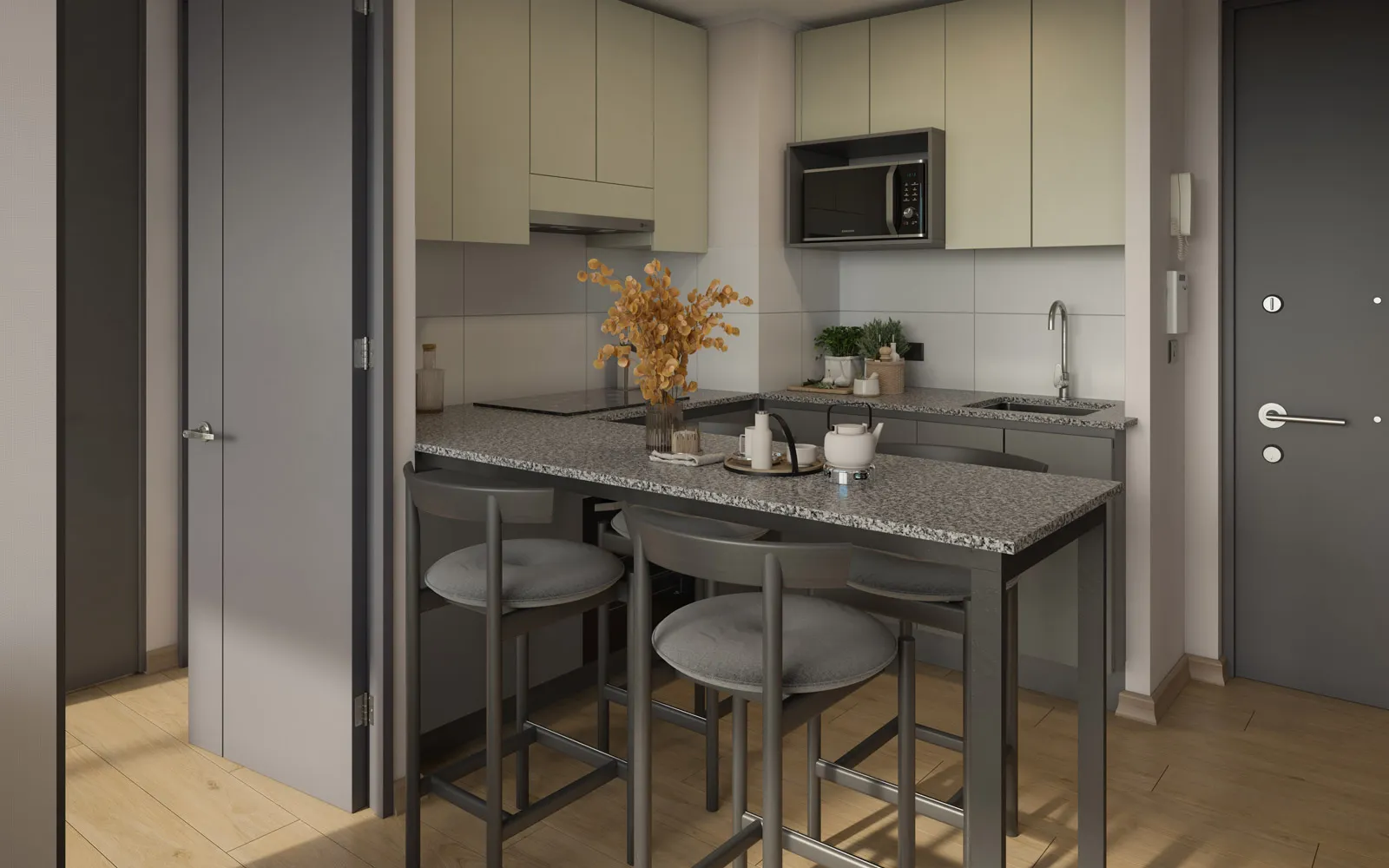 Con una excelente conectividad y un gran potencial de revalorización, este edificio es ideal para quienes buscan una inversión a largo plazo en una zona de crecimiento constante. Los departamentos están equipados con piso vinílico SPC, horno eléctrico, campana, cortinas roller, luminarias led y cocina vitrocerámica, ofreciendo un espacio moderno y funcional para los arrendatarios.