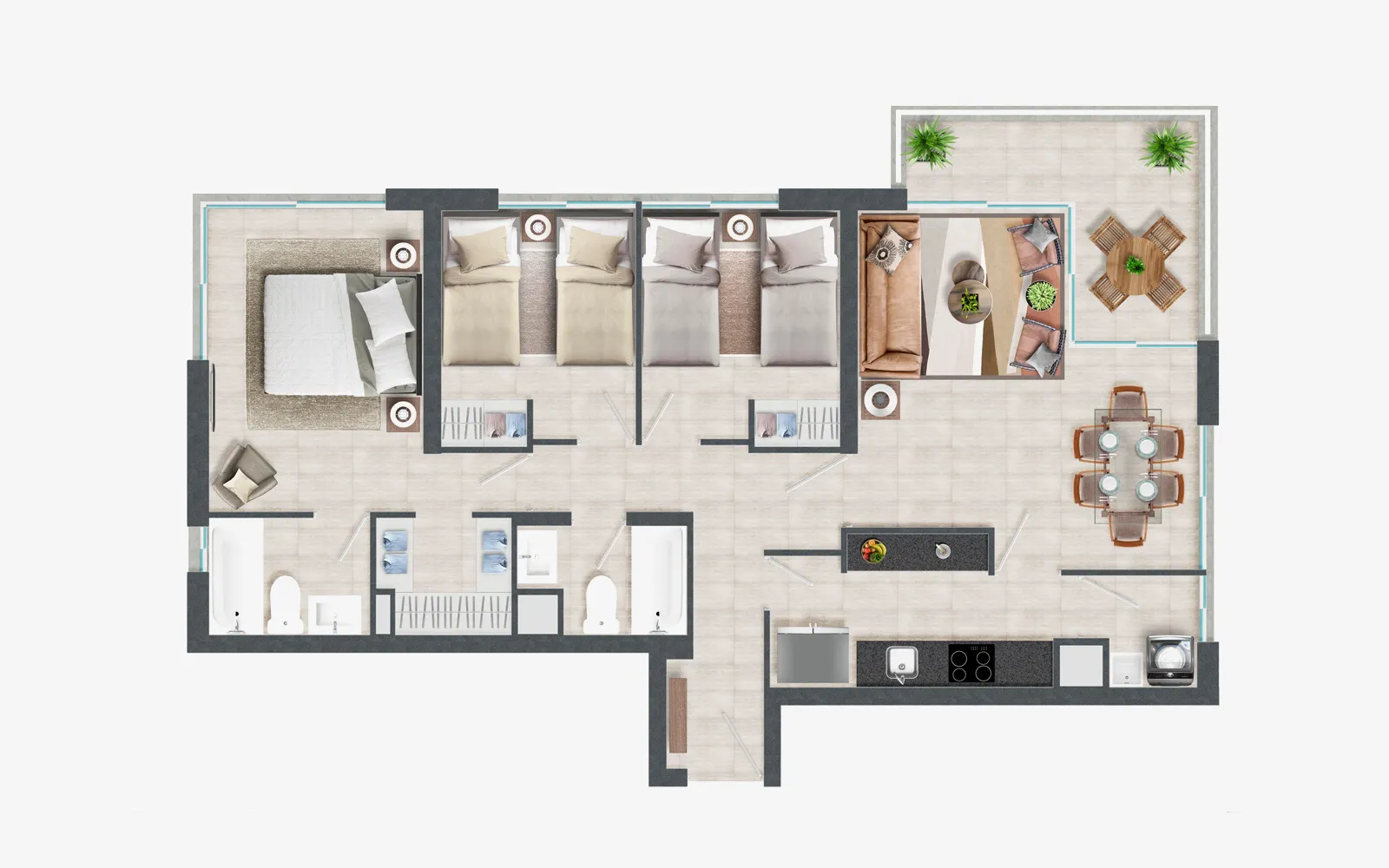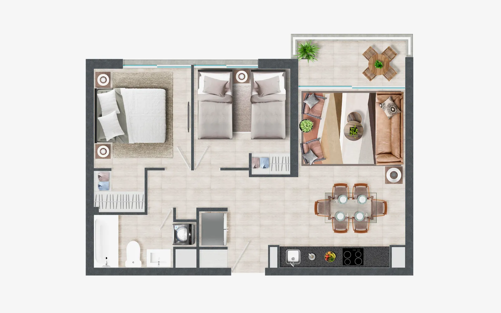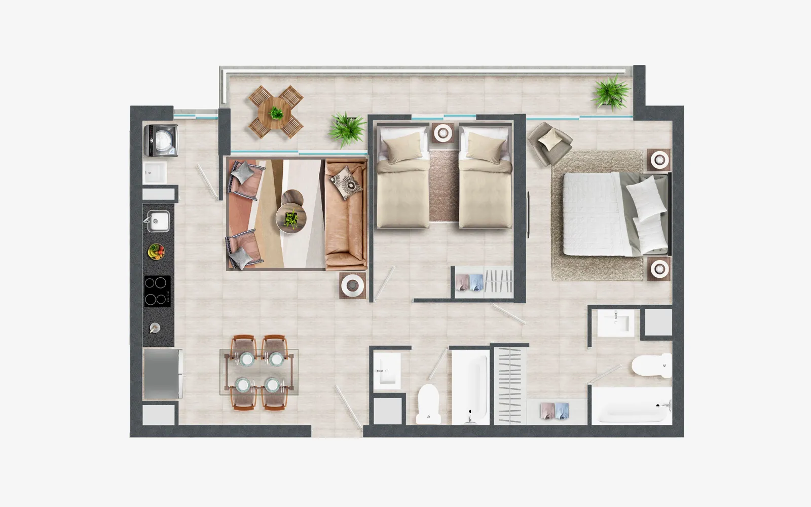 Todos los departamentos incluyen en el equipamiento corinas roller y equipamiento de iluminación LED