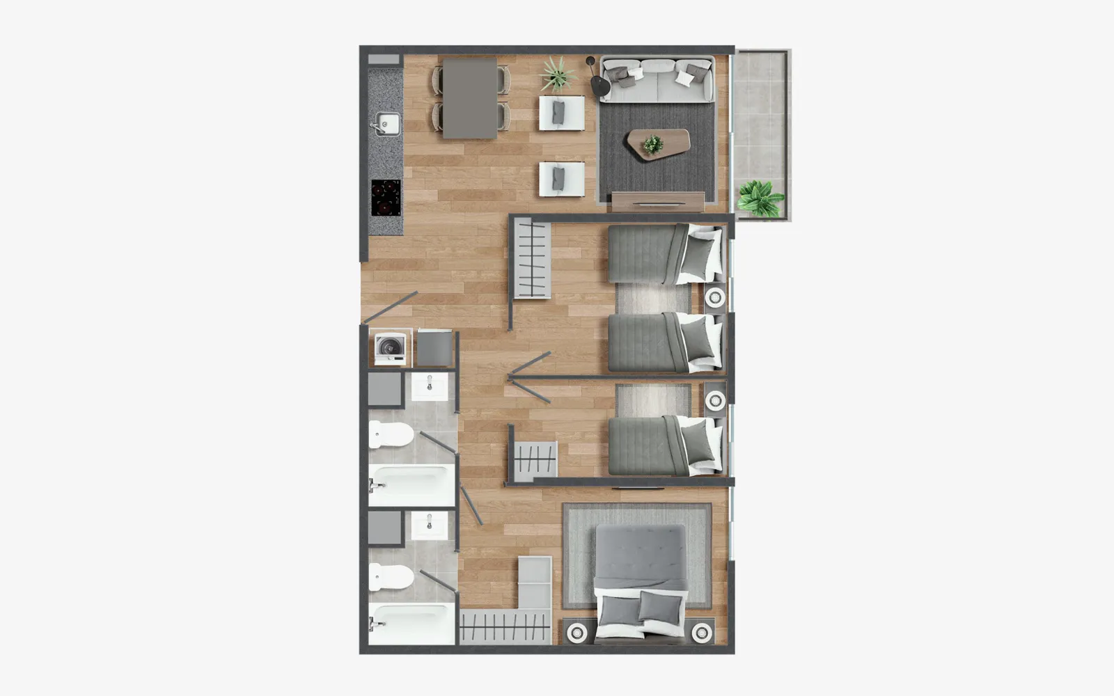 Disponibles en formatos de 1, 2 y 3 dormitorios, cada unidad ha sido diseñada para ofrecer espacios funcionales, modernos y acogedores.