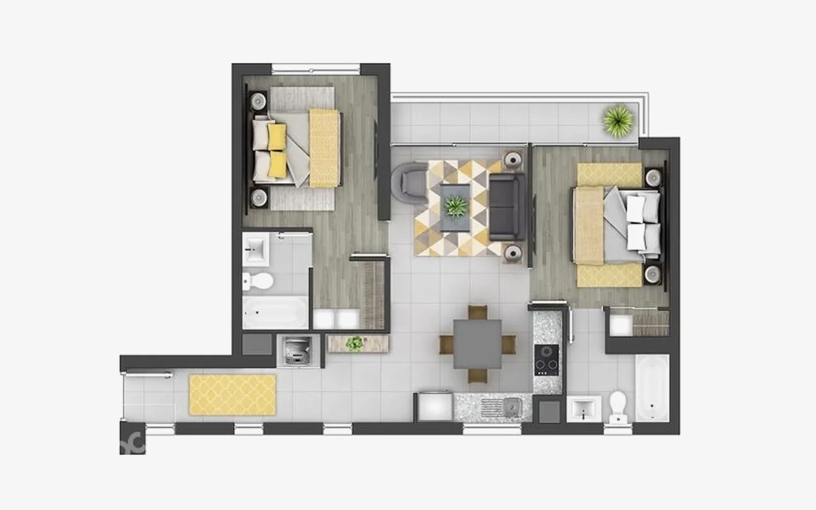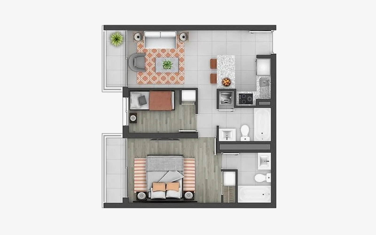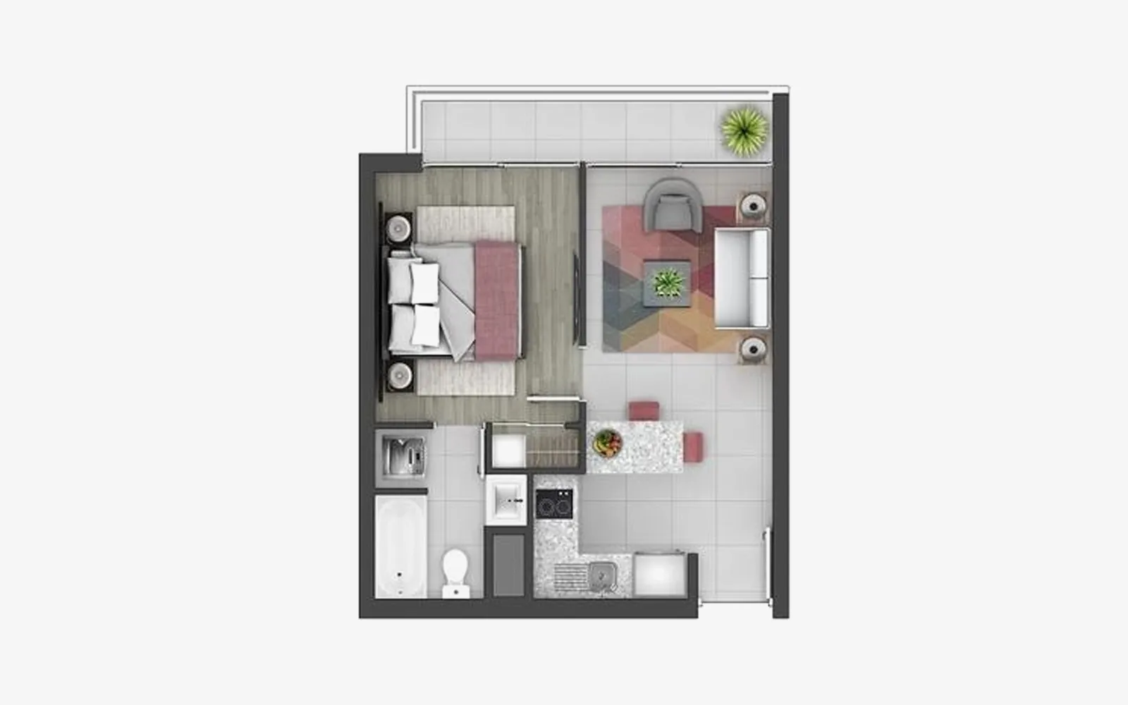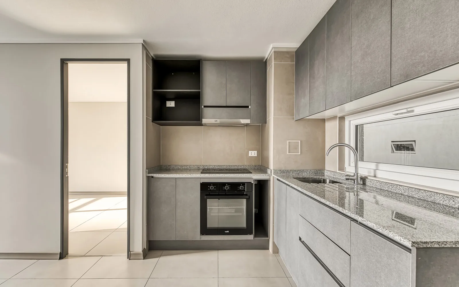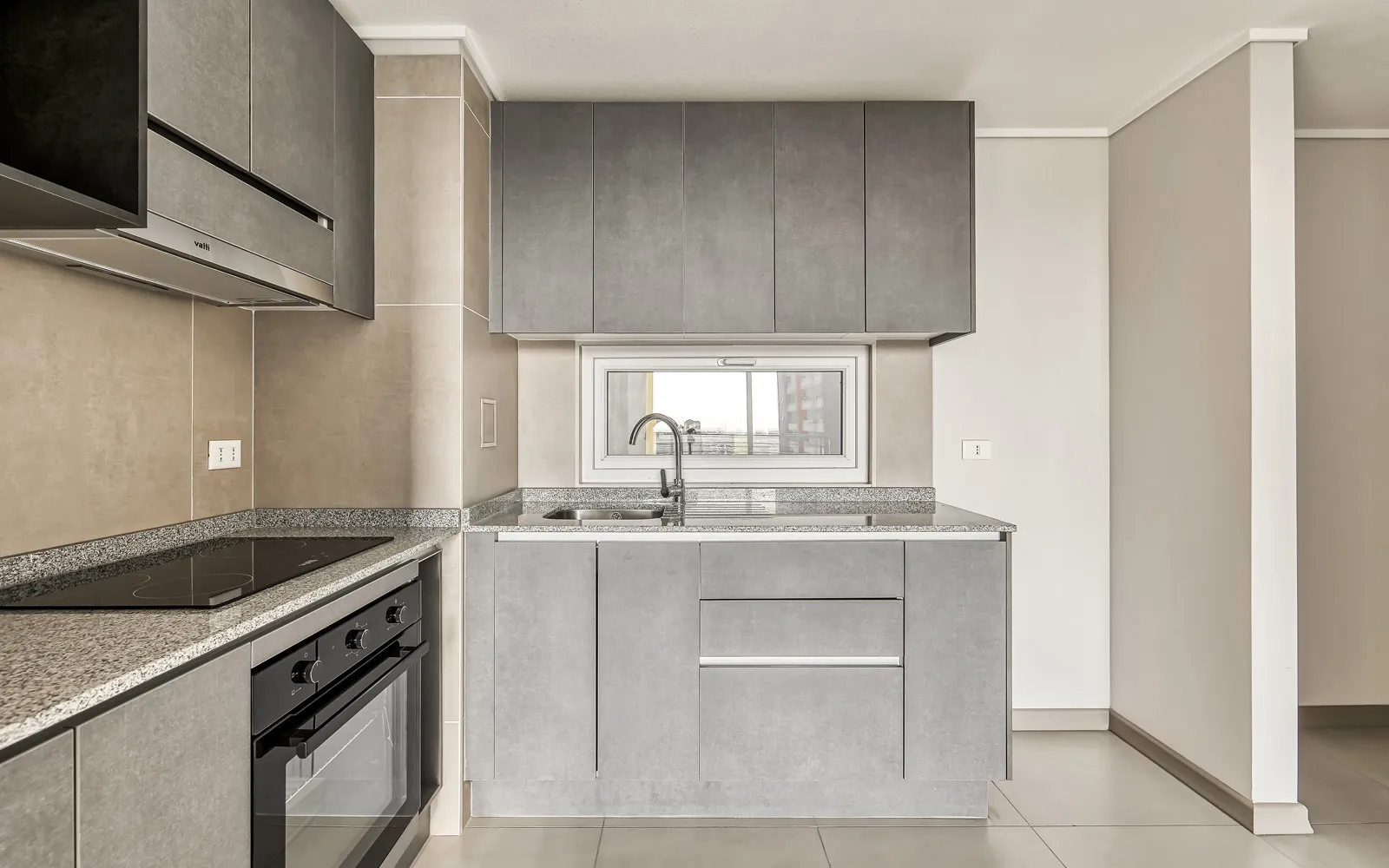 La cocina se entrega completamente equipada con horno eléctrico, encimera vitrocerámica y campana. Además, todos los departamentos cuentan con cortinas roller e iluminación LED ya instaladas, permitiendo disfrutar el espacio desde el primer día, sin gastos adicionales.